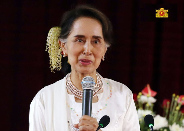 မိုင္းတံုၿမိဳ႕မွ ႏုိင္ငံေတာ္အတိုင္ပင္ခံပုဂၢိဳလ္ေဒၚေအာင္ဆန္းစုၾကည္ စီးႏွင္းလိုက္ပါလာတဲ့ နံပါတ္၁ဟတ္စကီး ဟိုက္ေဒါလစ္ဆီယိုသျဖင့္ ျပန္ဆင္းလာ နံပါတ္၂သို႔ေျပာင္းစီး အခု ျပန္လည္ထြက္ခြာသြားပါၿပီ Credit - Min Zaw Oo